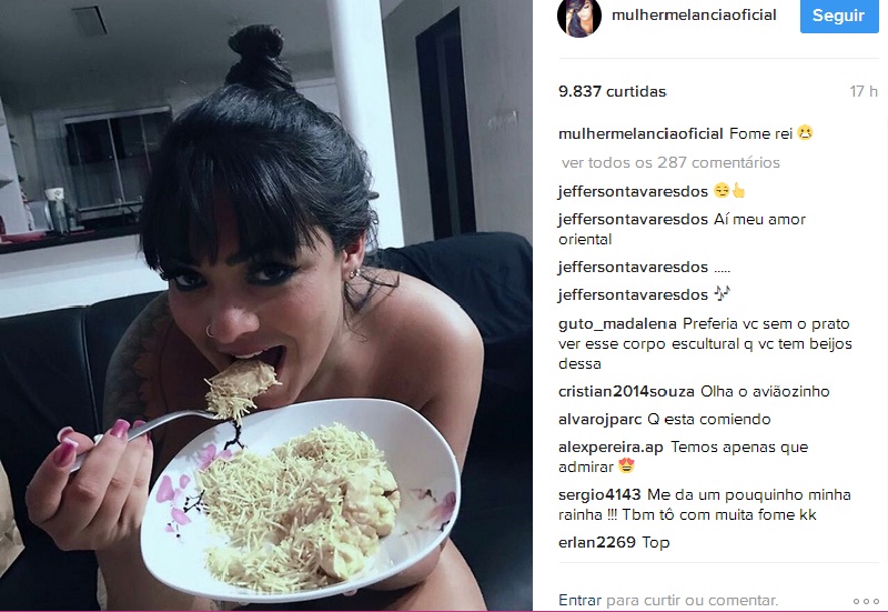 Os seguidores da Mulher Melancia foram ao delírio neste domingo (2) após ela publicar uma foto comendo. As informações são do Ego.