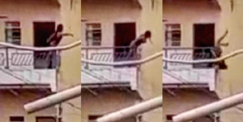 Em vídeo que circula nas redes sociais, vítima perde o equilíbrio e cai, batendo com o rosto no chão. Polícia Civil trata o caso com suicídio.