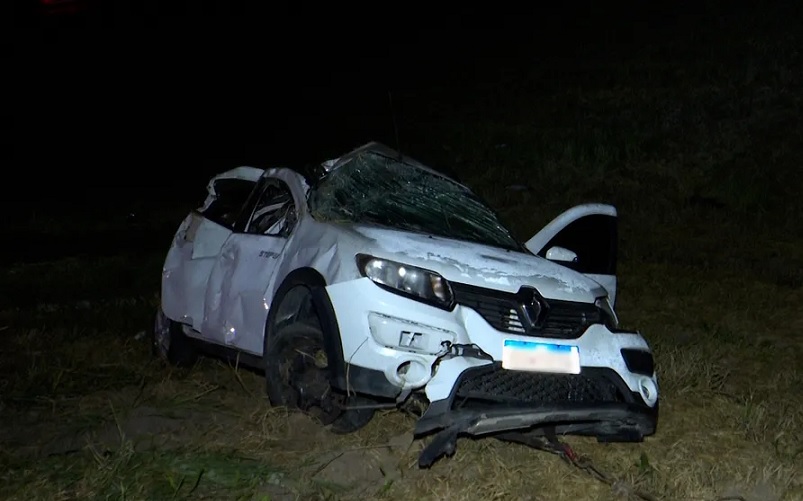 Carro seguia no sentido Campina Grande – João Pessoa quando motorista perdeu o controle, bateu no meio fio e capotou no canteiro central, próximo a cidade de Cruz do Espírito Santo.