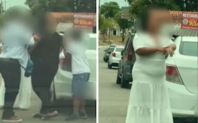 A reação da noiva foi imediata: “Mulher, o homem não te quer”, afirmou, defendendo seu companheiro em meio à confusão. A situação gerou apreensão entre os presentes, que ameaçaram chamar a polícia para conter o embate.