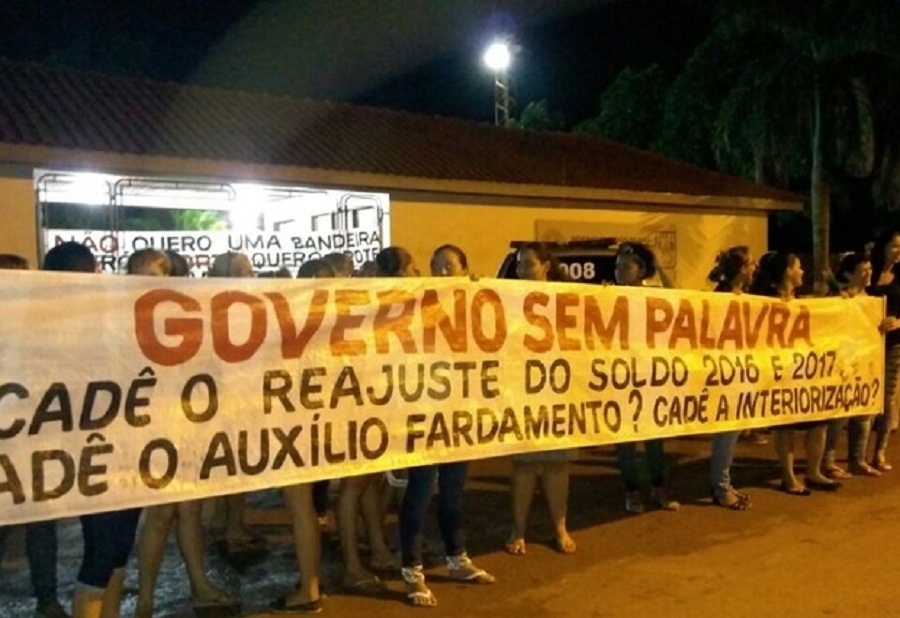 As manifestantes montaram barracas para passar a noite no local. pedem melhorias para a PM no município, que inclui o reajuste salarial, pagamento de auxílio-alimentação e auxílio fardamento, aumento do efetivo policial, além da diminuição da carga horária de trabalho. Ainda segundo elas o plano de saúde do IASEP não estaria funcionando no município.
