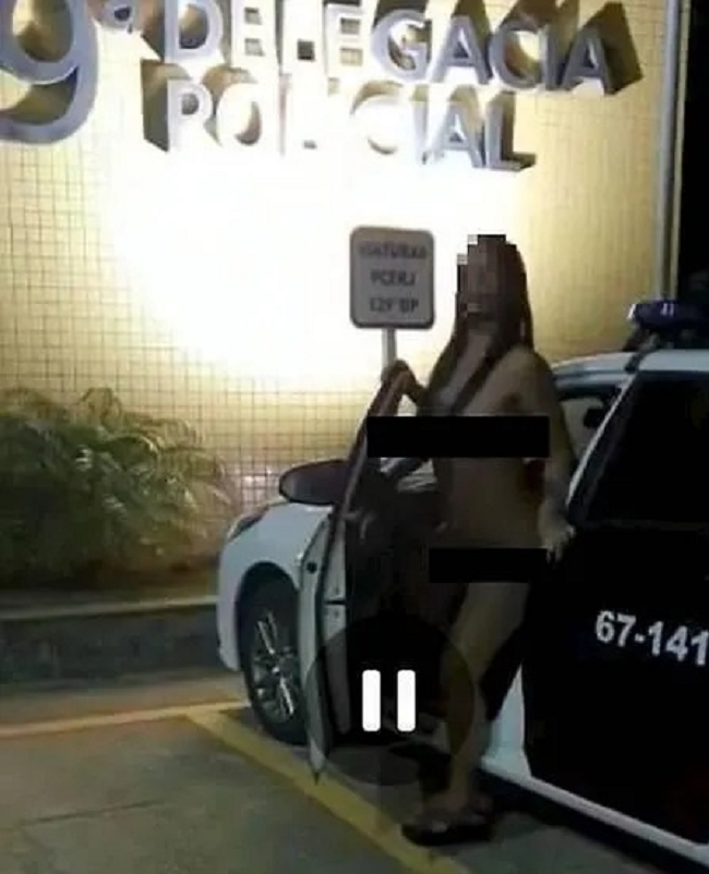 Segundo as investigações, o casal teria esperado por um horário de menor movimento para tirar as fotos. Uma das imagens mostram a mulher totalmente nua, saindo de uma viatura estacionada na porta da 129ª DP. Em seguida, ela também aparece subindo uma escada na Delegacia de Polícia Civil.