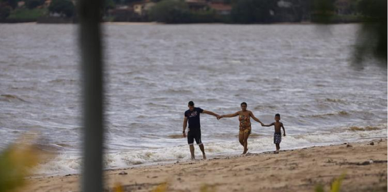 Apesar da fiscalização, algumas poucas famílias arriscaram um passeio na praia (Foto:Thiago Gomes/O Liberal)