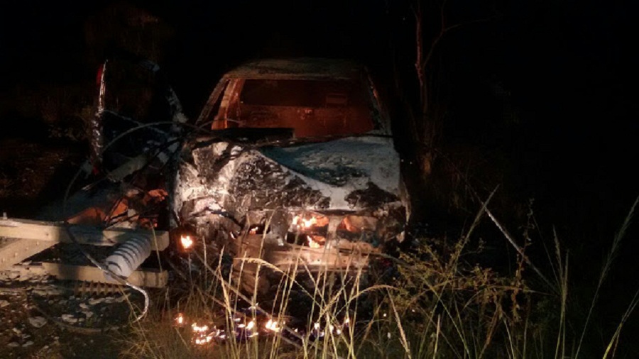 Na noite de Domingo (13) uma batida de um carro em um poste de alta tensão quase acaba em em morte. Segundo as nossas fontes na cidade, o carro colidiu com um poste de alta tensão, o  poste cai u em cima do carro que  pegou fogo.
