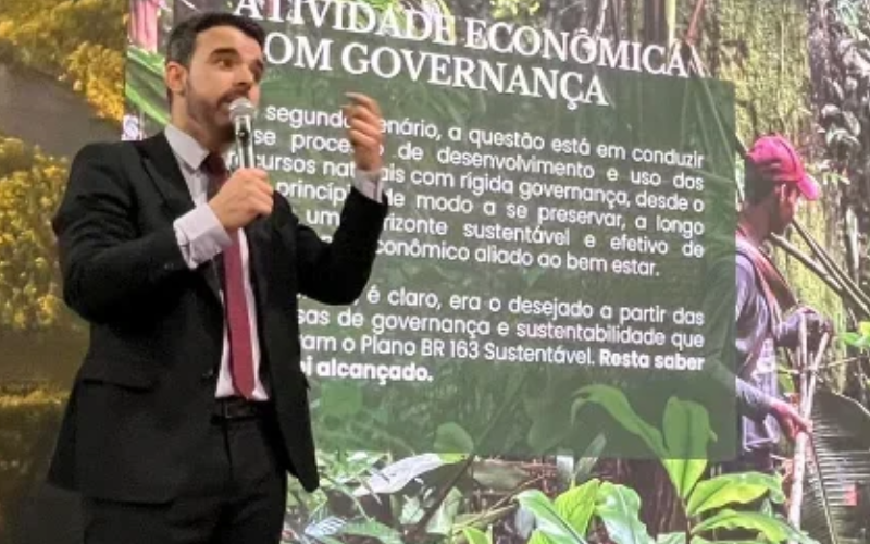 Flona do Jamanxim e TI Baú -Em relação a crimes ambientais, como grilagem e desmatamento, o juiz palestrante referiu-se ao Vale do Rio Jamanxim, situada às margens da BR-163 (Rodovia Santarém-Cuiabá), onde foram criadas, na década dos 2000, unidades de conservação com o objetivo de preservar o meio ambiente.