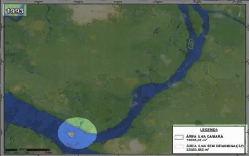 Imagens de satélite mostram Ilha Camará, no lado esquerdo, que desapareceu — Foto: ICIBE / UFRA – Parecer técnico da análise espacial do processo de desaparecimento da Ilha Camará – Marapanim (PA)