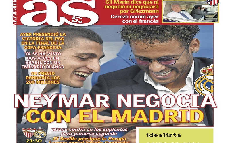 As informações são estampadas com a seguinte manchete: “Neymar negocia com o Madrid”. O mesmo diário “As”, no entanto, publicou em março que as cifras para a transação poderiam chegar até € 400 milhões (R$ 1,6 bilhão na cotação da época), € 140 milhões a menos que o preço informado na capa desta quarta.