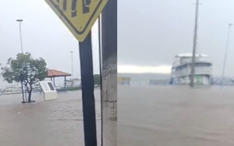 Desde a madrugada desta quarta-feira (19), fortes chuvas atingem Santarém, no oeste do Pará, causando alagamentos em vários pontos da cidade. Um dos cenários mais impactantes é a orla da cidade, que ficou visivelmente nivelada com as águas do Rio Tapajós.