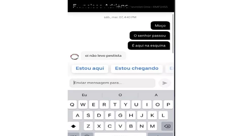 Motorista alega que não vai atender cliente: “não transporto petistas” — Foto: Reprodução/Twitter
