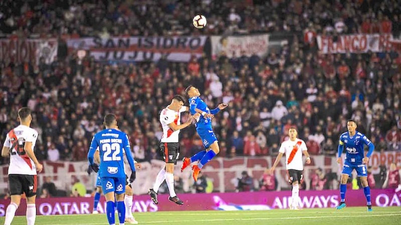 Os primeiros minutos mostraram uma postura diferente do Cruzeiro em campo. Embora a partida fosse no Mineirão, a Raposa tinha um estilo defensivo de jogo, esperando o River Plate em seu campo defensivo, com os atletas atrás da linha da bola.