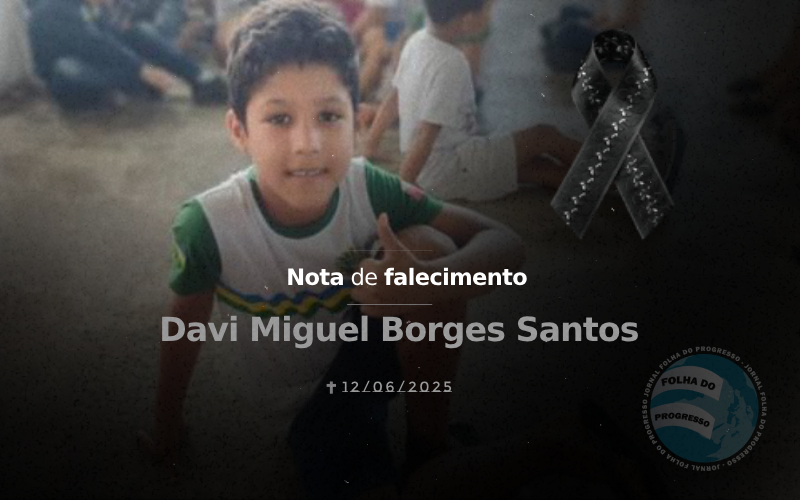 É com profundo pesar que comunicamos o falecimento do pequeno Davi Miguel Borges Santos, de apenas 7 anos, ocorrido na última quinta-feira, 12 de junho de 2025, vítima de afogamento no rio Jamanxim, em Novo Progresso (PA).