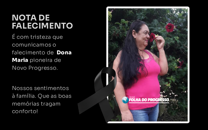 Pioneira em Novo Progresso, Dona Maria era moradora do Assentamento Nova Fronteira e pessoa muito conhecida na comunidade, deixando um legado de simplicidade, trabalho e amizade.