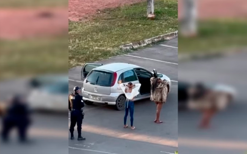 Transtornada, a travesti pegou uma pedra para atirar no cliente e ameaçou danificar o carro em que ele estava. Sem roupas, ela gritava e exigia o pagamento dos valores acordados.