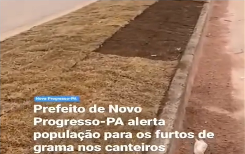 Algumas semanas após a implantação de gramado no canteiro central da Avenida Jamanxim, em Novo Progresso, parte da grama foi furtada. De acordo com a prefeito municipal, desde o início do ano as equipes estão trabalhando para melhorar o visual das rotatórias, canteiros, praças e reforçando a estrutura desses e outros equipamentos públicos do município. Porém, os registros de furtos e atos de vandalismo estão se tornando cada vez mais frequentes.