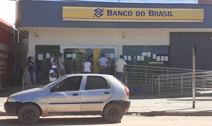 Fila com mascara no Banco do Brasil em Novo Progresso –  (Foto:Adria Caroline)-
