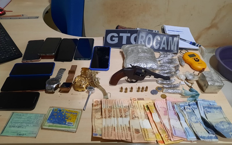 Após buscas, foram localizados mais de 400 grama, 3,8 de Crack , balança de precisão ,celulares e arma de fogo.