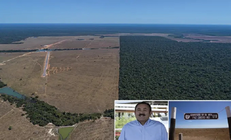 RECORDISTA – Imagem aérea da Fazenda Cristo Rei, de Edio Nogueira, em Mato Grosso: uma multa de 50 milhões de reais pelo estrago e outra, de 2 milhões de reais, por uso de agrotóxico para acelerar a morte das árvores – Caio Guatelli/Reprodução
