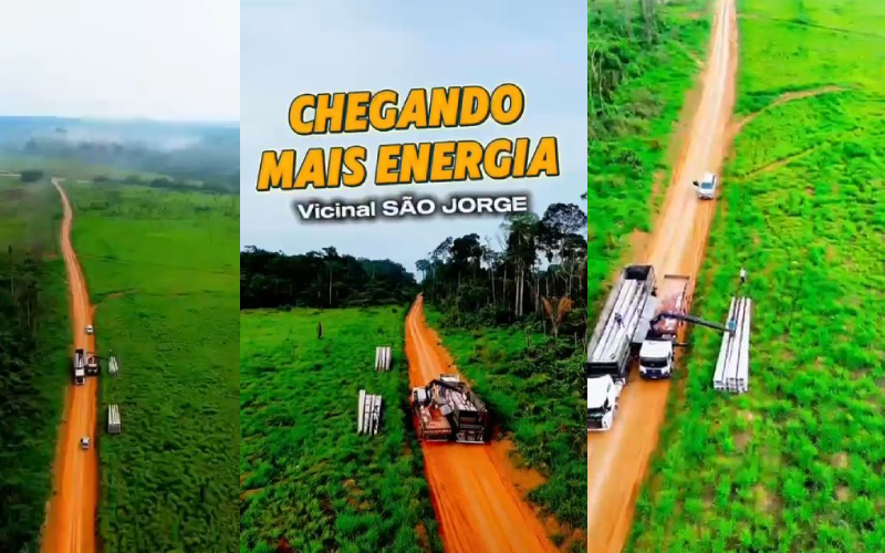 Foto: Reprodução | Nesta quinta-feira (6), o prefeito de Novo Progresso, Gelson Dill, esteve na vicinal São Jorge, localizada no PDS Nelson de Oliveira, acompanhando o recebimento dos postes que irão compor a nova rede de distribuição de energia elétrica da comunidade.