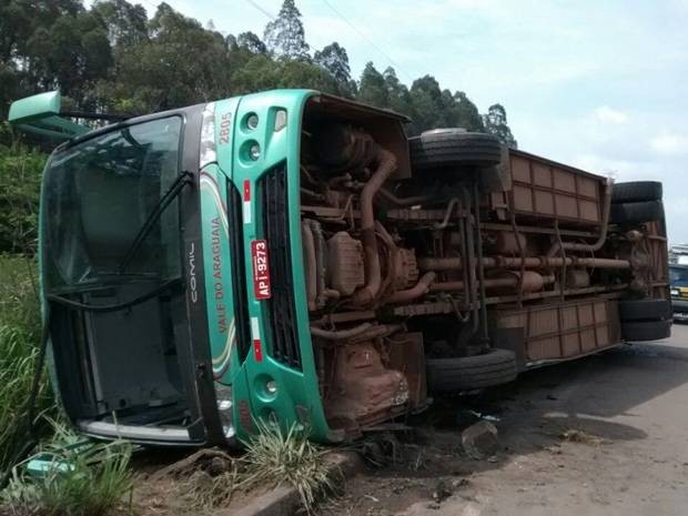 Veículo transportava 13 pessoas e quatro ficaram feridas.