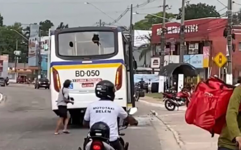 Testemunhas que estavam no local, incluindo outros entregadores, se reuniram e começaram a atirar pedras contra o ônibus em reação ao episódio. A polícia foi acionada para apurar a situação e garantir a segurança no local.