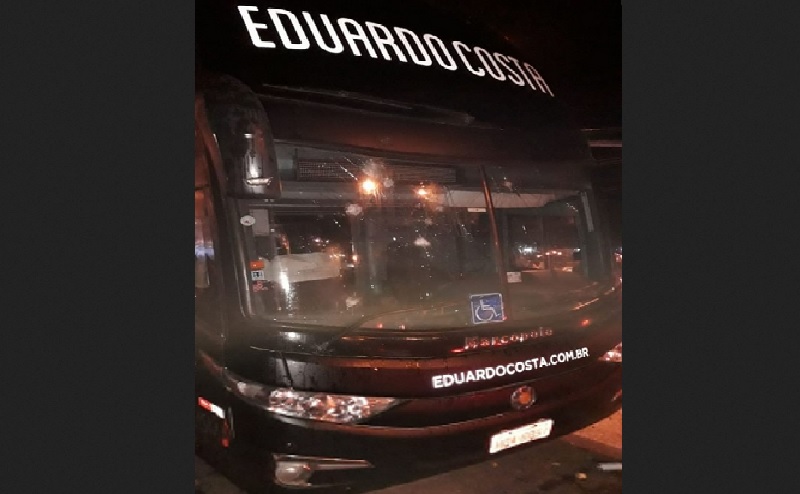 Ônibus de Eduardo Costa é apedrejado em Primavera do Leste (MT). — Foto: Divulgação