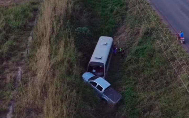 Segundo testemunhas, a caminhonete atingiu durante uma tentativa de ultrapassagem irregular. Com o impacto, os dois veículos foram parar fora da estrada.a