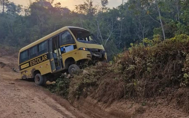 No trajeto para a escola, o motorista teria perdido o controle do veículo e colidiu com uma ribanceira. Apesar do susto, os estudantes tiveram apenas escoriações pelo corpo.