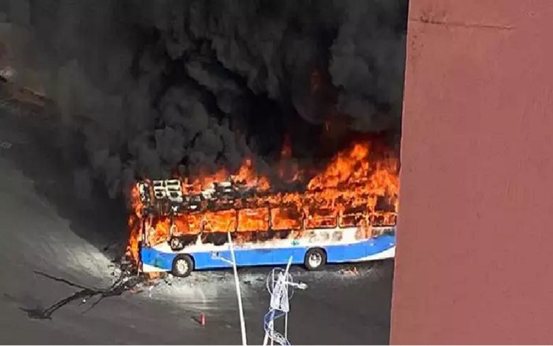 Ônibus pega fogo, explode e solta fumaça preta no Pará