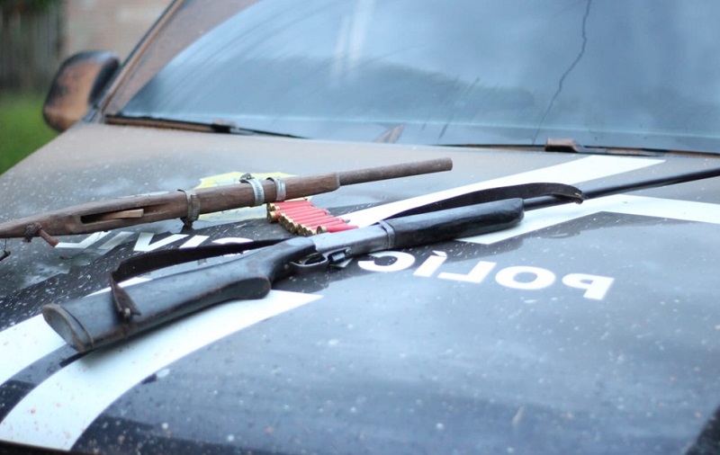 Os dois suspeitos foram encontrados com seis cartuchos de espingarda calibre 20 e dois cartuchos de espingarda calibre 28, sem marca nem numeração aparentes, uma espingarda calibre 20 de fabricação caseira e 12 cartuchos calibre 28.