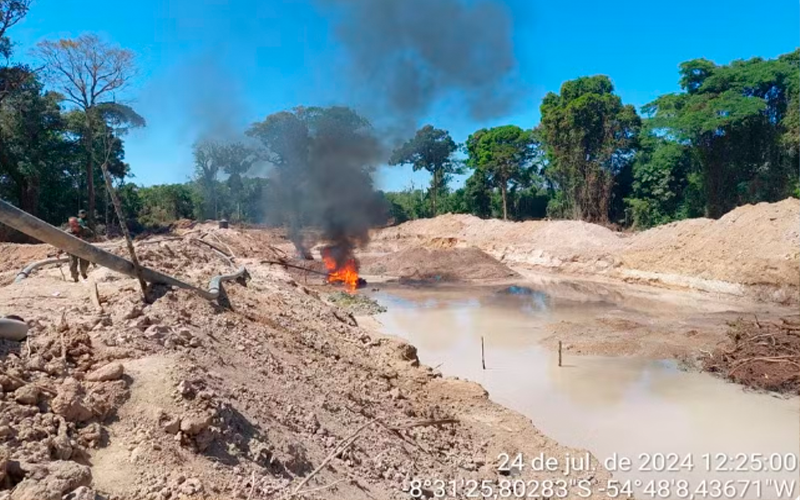 Uma operação do Ibama fechou um garimpo clandestino dentro de uma terra indígena, em Castelo de Sonhos, distrito de Altamira, sudoeste do Pará. Os rejeitos da lavra garimpeira alcançavam o rio Pixaxa, impactando as aldeias da Terra Indígena Menkragnoti.