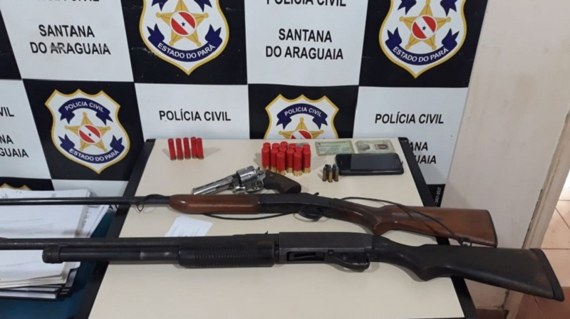 Foram apreendidas três armas de fogo: uma espingarda calibre 12, com 11 munições; uma espingarda calibre 20, com cinco munições; um revólver calibre 38, com cinco munições. As investigações continuam no sentido de identificar os demais integrantes da organização criminosa.