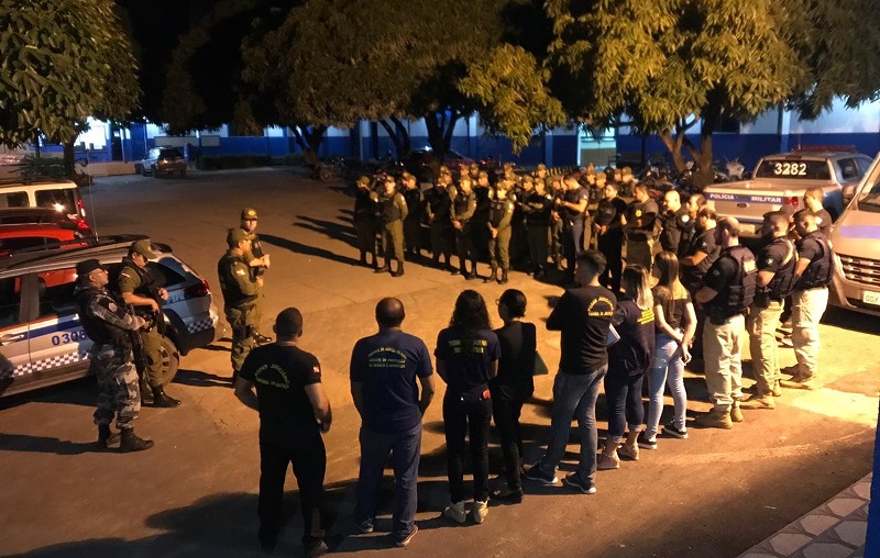 Órgãos de segurança reunidos no 3° BPM antes da saída para a operação integrada — Foto: Polícia Militar/Divulgação