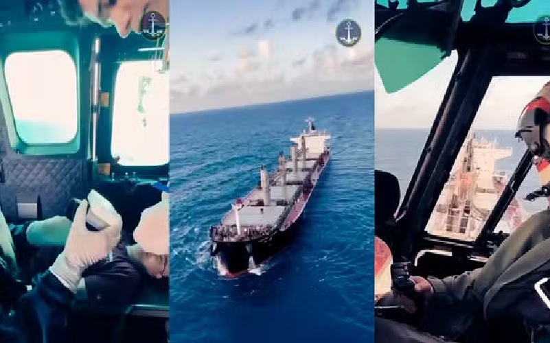 Helicóptero da Marinha salva chinês com dores abdominais em navio Internacional — Foto: Marinha do Brasil/Reprodução