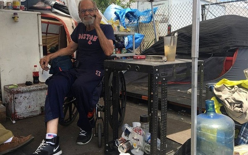 Mas ali, na esquina de uma rua ao norte de Miami, onde vive em uma barraca, rodeado por latas de conserva, embalagens vazias e lixo, ele não tem como carregar o aparelho naquele momento.