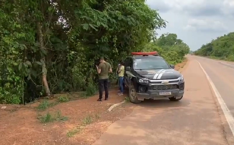 Populares acionaram a polícia após encontrarem uma ossada humana em um matagal às margens da BR 163 nas proximidades do município de Novo Progresso, na tarde desta segunda-feira, 10 de outubro de 2022. – (Foto: Reprodução Tv Progresso-Facebook)