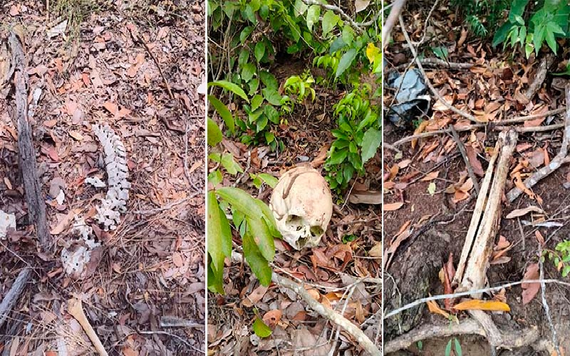 A Polícia Militar foi acionada e, após isolar a área, constatou que se tratava de ossos de uma pessoa que estavam dispersos em vários pontos do local.