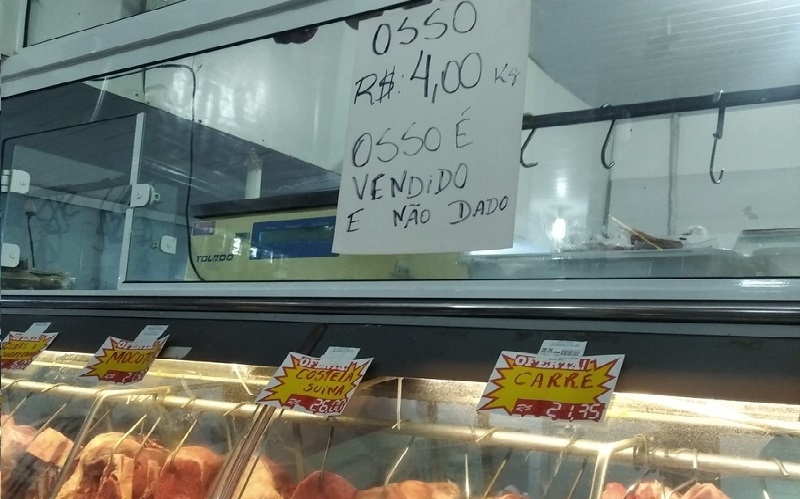 Segundo ele, a procura por ossos de boi começou a aumentar há cerca de um ano e uma placa com o preço do produto foi colocada no local. “Sempre vendi, mas aumentou”, diz. “Quando vem uma pessoa necessitada, eu ainda faço a doação”, explica.