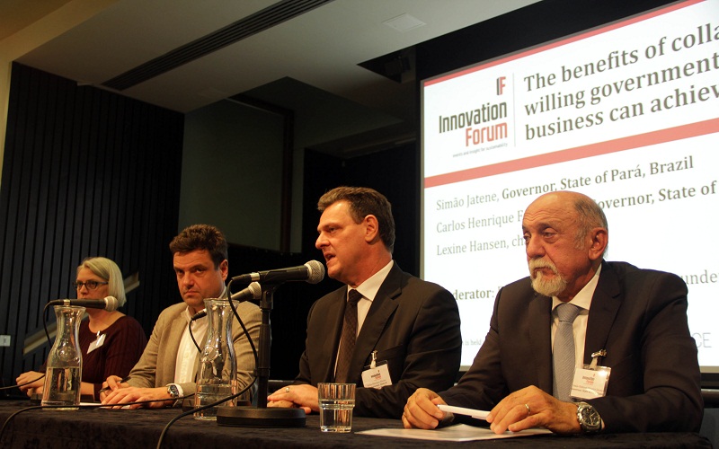 Foto O governador Simão Jatene apresentou dados que comprovam o empenho do Pará nos últimos anos para frear o desmatamento na Amazônia. – As reuniões registraram presença de mais de 100 especialistas, investidores, presidentes de instituições financeiras e de fundos de financiamento de projetos sustentáveis, além de representantes de empresas globais da cadeia de abastecimento alimentar