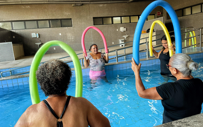 “Foi uma necessidade que surgiu, e graças a Deus eu pude contar com o suporte do Hospital Abelardo Santos”, reconhece Irene Ferreira, após duas semanas de terapia. Ela acrescenta ainda: “além de aliviar as dores e fortalecer os músculos, a hidroterapia é uma atividade de menor impacto que está restaurando meus movimentos e minha qualidade de vida rapidamente”.