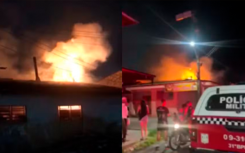 Vídeos gravados por moradores mostram a intensidade das labaredas. O Corpo de Bombeiros foi acionado, e equipes da guarnição da cidade foram até o local e controlaram o incêndio.