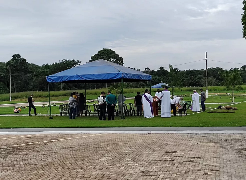 Sepultamento aconteceu nesta segunda-feira (4) em cerimônia restrita — Foto: Amarildo Gonçalves/TV Tapajós