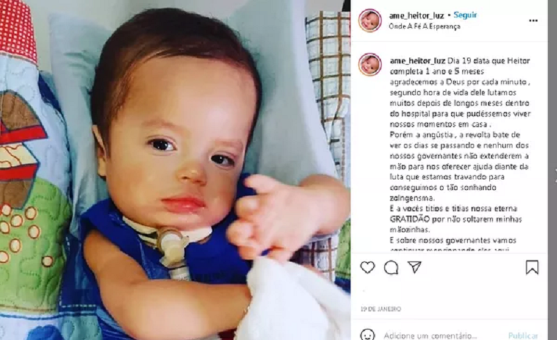 De acordo com Daniele e Luiz, está em andamento um processo judicial junto a União para que o Governo Federal complemente o valor que falta para que Heitor faça o tratamento. Até o momento, a família arrecadou R$ 167,6 mil em doações.