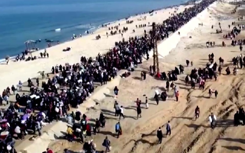 O deslocamento formou um “corredor humano” de dezenas de milhares de palestinos, que andavam pela orla de Wadi Gaza, próximo a uma praia. Veja no vídeo acima e em fotos mais abaixo.