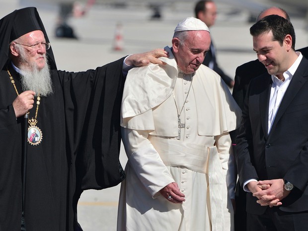 Francisco foi recebido pelo primeiro-ministro da Grécia, Alexis Tsipras, e pelo patriarca ecumênico Bartolomeo, que lhe deram as boas-vindas.