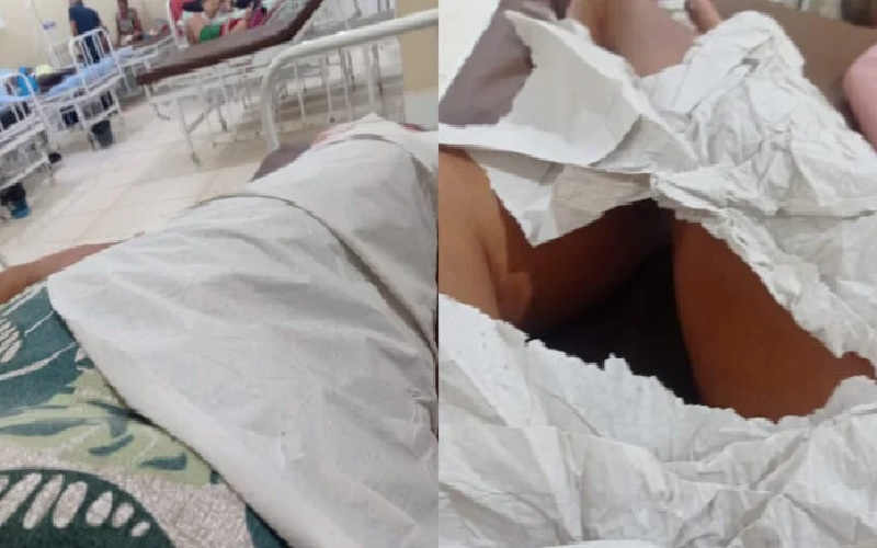 (Foto: Reprodução) – Moradores denunciam uso de papel em leitos hospitalares, evidenciando descaso e falta de condições adequadas na unidade de saúde do sudeste do Pará.