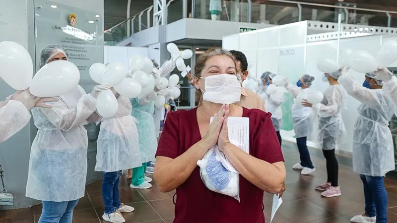 Paciente recuperada deixa o hospital de campanha no Hangar (Foto| Alex Ribeiro/Ag. Pará ) – Nesta sexta-feira (2), o Brasil alcançou a menor média móvel de mortes por Covid-19, desde maio, e o Pará foi o Estado brasileiro que mais apresentou queda no número de óbitos, com redução de 49%. As informações são do portal UOL e compilados por consórcio nacional de imprensa.