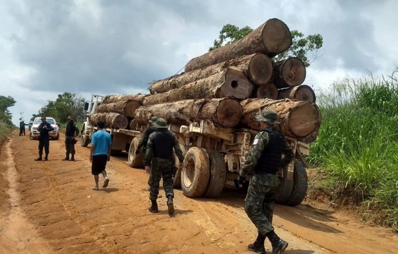O Governo do Pará deflagrou mais uma operação de combate ao desmatamento ilegal. Equipes da Secretaria de Estado de Meio Ambiente e Sustentabilidade (Semas) e do Batalhão de Polícia Ambiental (BPA), da Polícia Militar, já apreenderam uma pistola 380, uma espingarda, um radiocomunicador, um trator esteira e cinco motosserras, além de um caminhão com 38 toras de madeira, da espécie Acapu, cuja exploração é proibida por lei. A carga, equivalente a 18,2 m³, pode ser leiloada ou doada. Três acampamentos clandestinos foram destruídos pelas equipes.