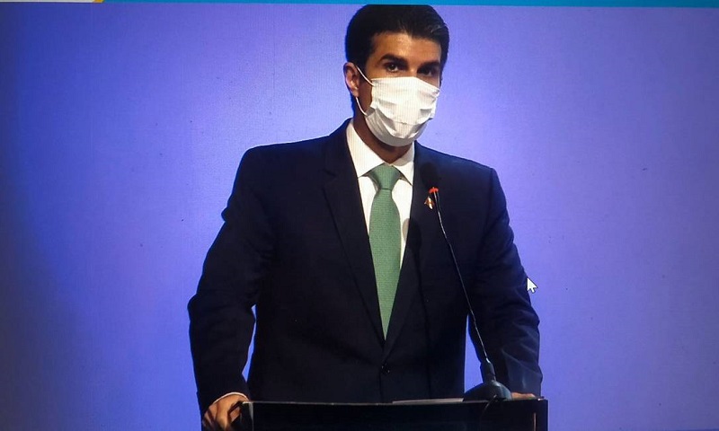 O governador do Pará, Helder Barbalho, lança edital para receber propostas de interessados na concessão de reservas naturais com comercialização de crédito de carbono na abertura do Fórum Mundial de Bioeconomia, realizado em Belém (Foto: Reprodução)