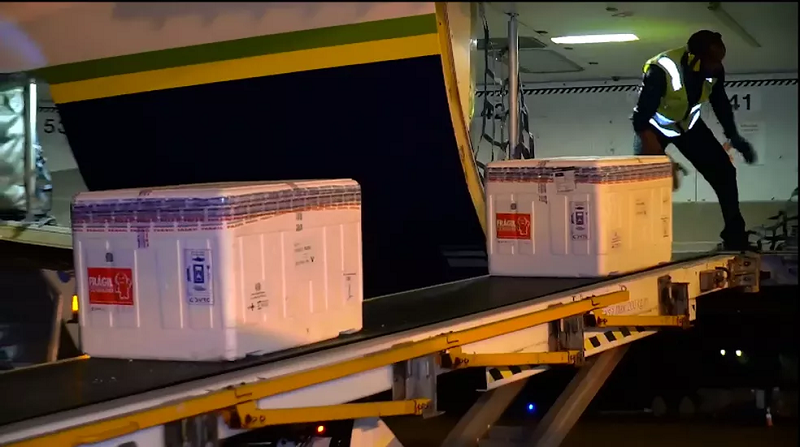 Chegada das vacinas durante a madrugada desta quinta-feira, 12 — Foto: Reprodução/Agência Pará