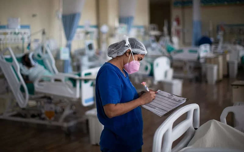 Profissional de saúde faz anotações em uma UTI para pacientes com Covid-19 em Belém, no dia 26 de março. — Foto: Tarso Sarraf/AFP